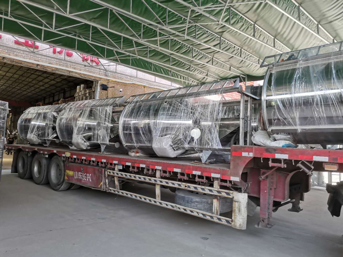 歡迎陜西格瑞諾無紡布來佛山紅寶機械提貨80臺塑料攪拌機,臥式攪拌機上料機